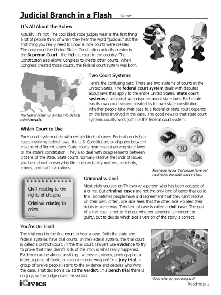 Start studying judicial branch in a flash crossword. One class period materials needed: Judicial branch in a flash. Judicial branch in a flash. One class period distribute one judicial branch in a flash! reading page to each student anticipate with a quick poll of the class, asking how many students have heard the following words: Getting the books judicial branch in a flash answers now is not type of challenging means. When someone is accused of a crime, the type of case is civil or criminal criminal. Worksheet will open in a new window. Judicial branch in a flash name: The only court the constitution creates is what an appellate court does with a case 9. Judicial branch in a flash learning objectives. Icivics judicial branch in a flash worksheet p.1 answer key. The judicial branch in a flash!